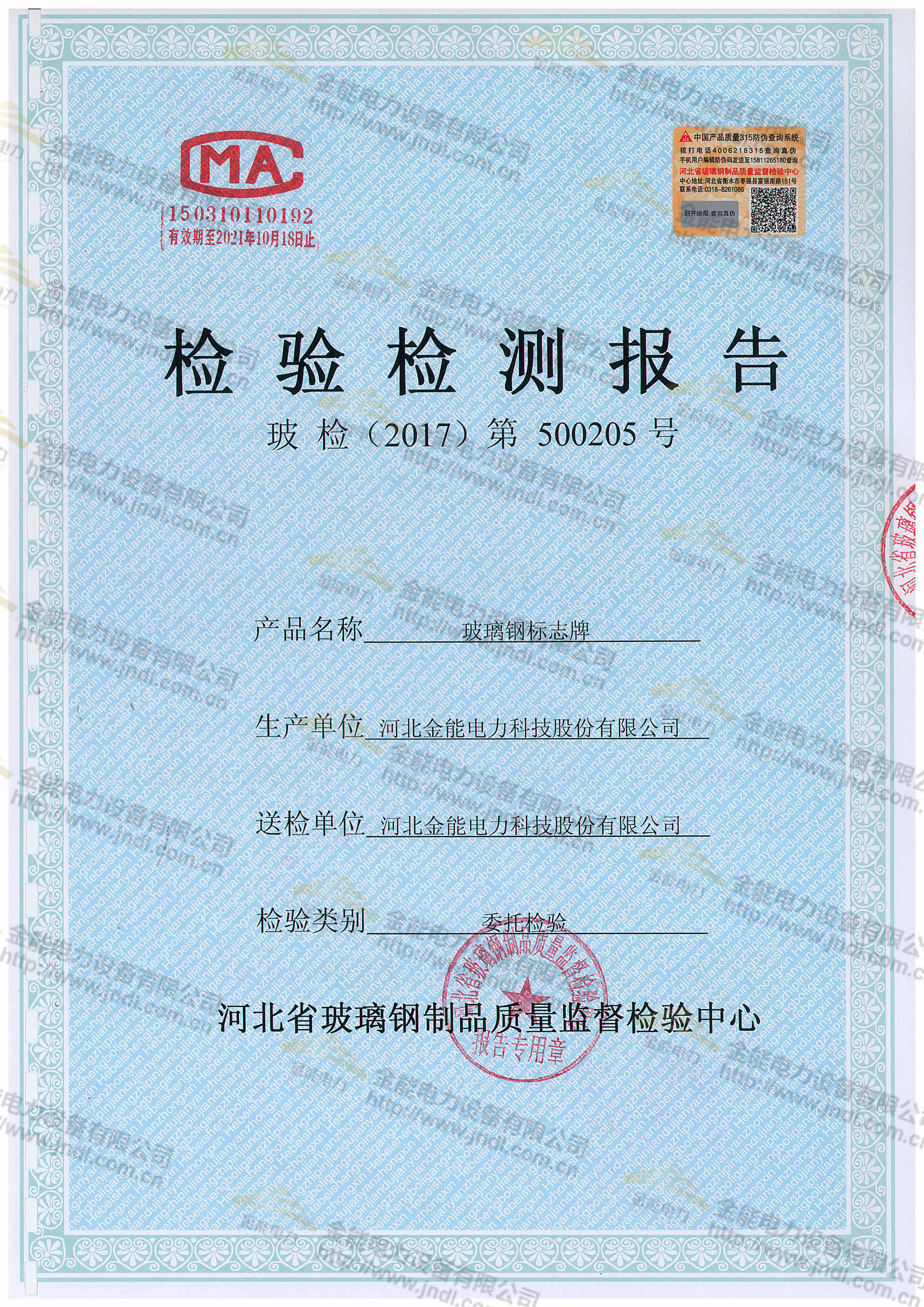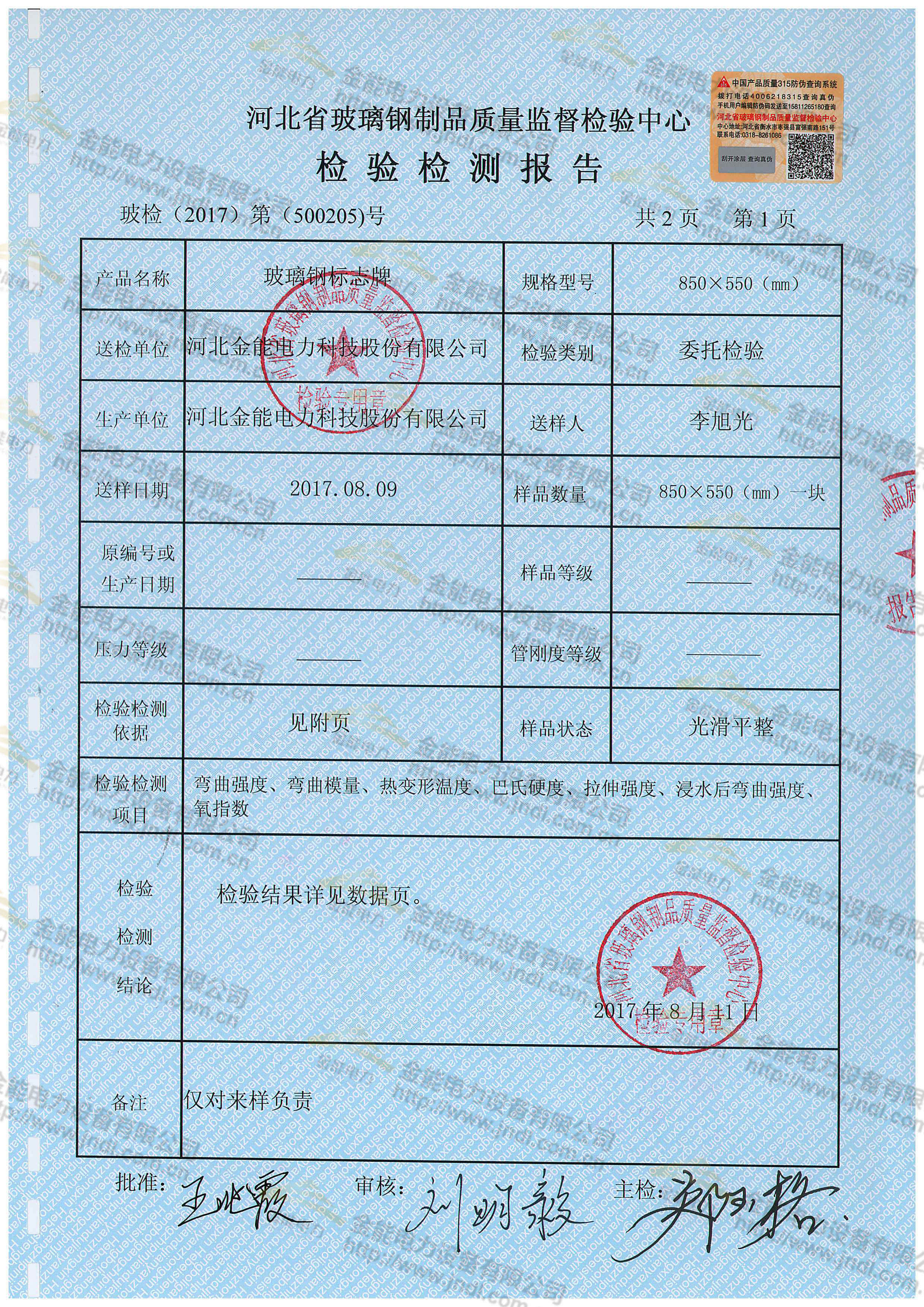 玻璃鋼標志牌檢測報告