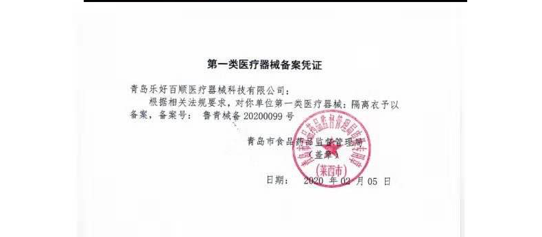 防護(hù)服由連帽上衣、褲子組成,分為連身式結(jié)構(gòu)和分身式結(jié)構(gòu)。防護(hù)服的結(jié)合部位應(yīng)嚴(yán)密。袖口、腳踝口采用彈性收口,帽子面部收口及腰部采用彈性收口、拉繩收口或搭扣。產(chǎn)品性能:防護(hù)服透濕量應(yīng)不小于2500g/(m2?d),防護(hù)服對非油性顆粒物的過濾效率不小于70%,防護(hù)服帶電量應(yīng)不大于0.6μC。其它性能指標(biāo)詳見注冊產(chǎn)品標(biāo)準(zhǔn)《一次性醫(yī)用防護(hù)服》。